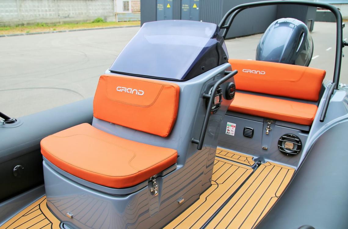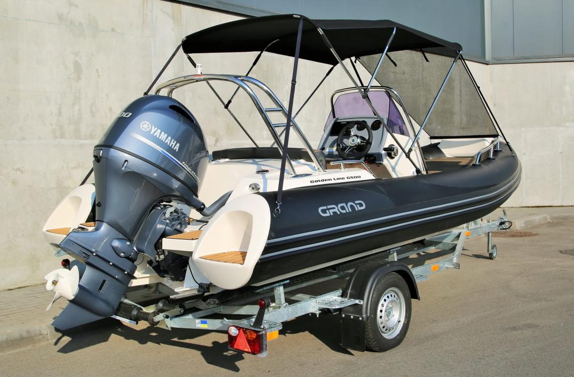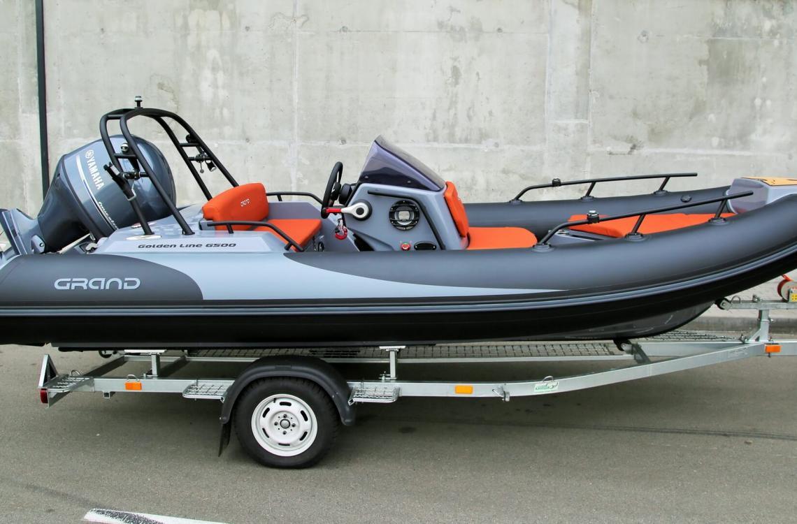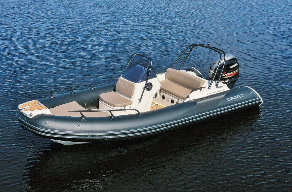 GRAND G500 — один із найпопулярніших RIB-човнів серії Golden Line від українського виробника GRAND Marine. Модель поєднує сучасний зовнішній вигляд, продуману конструкцію та якісні матеріали, забезпечуючи комфорт, надійність і відмінні ходові характеристики.