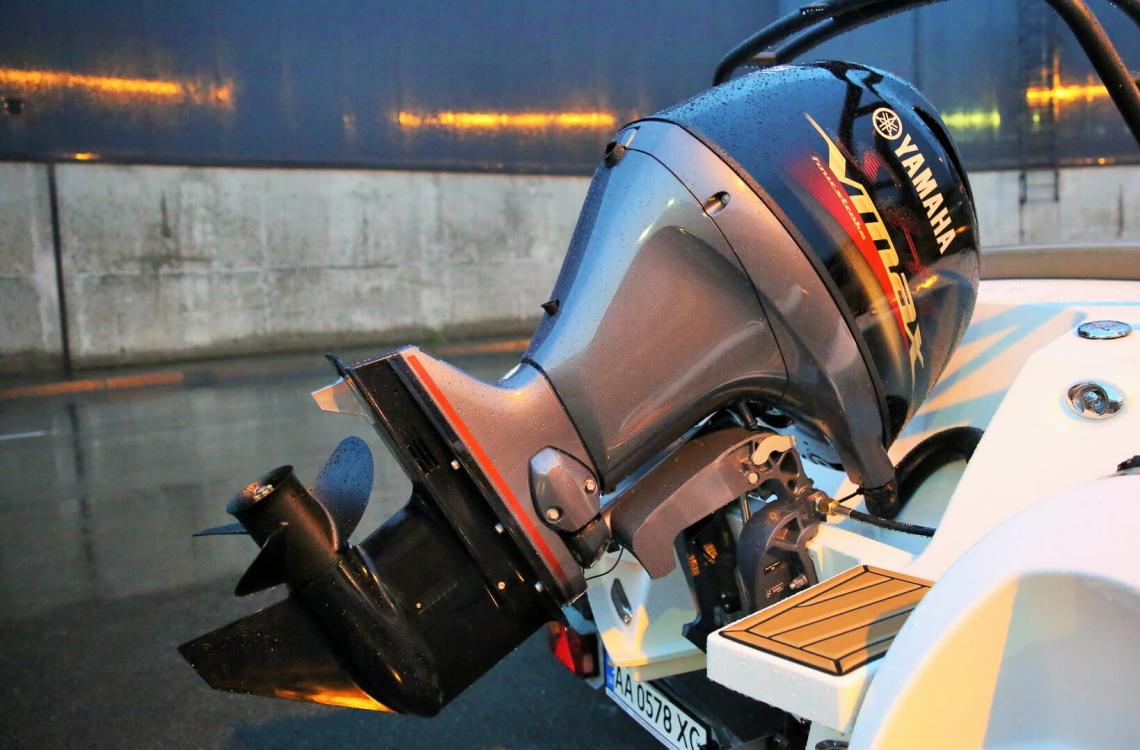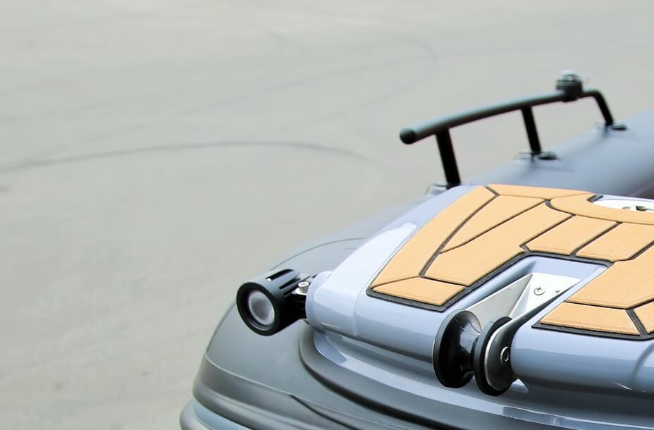 Корпус із міцного склопластику має виражену кілюватість і транцеве розширення типу «ластівчин хвіст», що покращує стабільність і керованість. Ступінчасте днище (High-Step-Hull) зменшує опір води, підвищує ефективність руху та допомагає економити паливо. Надувні балони додають плавучості й безпеки, а їх форма оптимізує простір у кокпіті та зменшує потрапляння води всередину.