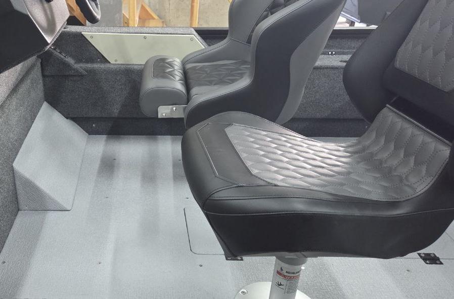 Простора палуба з морським покриттям (ковролін або вініл) створює зручні умови для риболовлі, а продумана система рундуків дозволяє організувати зберігання спорядження. Зокрема, передбачені окремі відсіки для спінінгів довжиною до 2,6 м з обох бортів, а також носовий рундук з двома кришками.