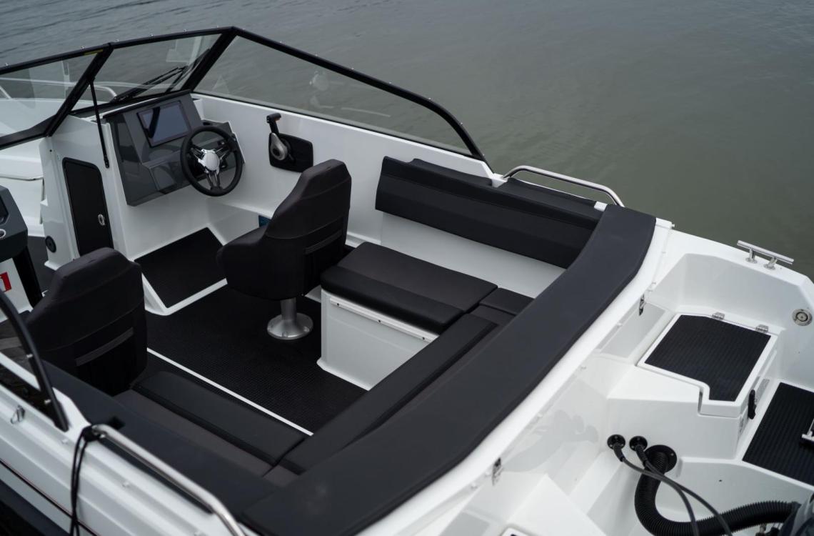 Yamarin Cross 62 BR вирізняється універсальністю, яка відкриває можливості для триваліших подорожей. Продумане планування простору створює відчуття нової розкоші та комфорту керування човном. У кокпіті розташований просторий U-подібний м’який диван, що забезпечує зручність для всіх пасажирів. Велика кількість відсіків для зберігання дозволяє легко розмістити всі необхідні речі для одноденної поїздки або активного відпочинку.