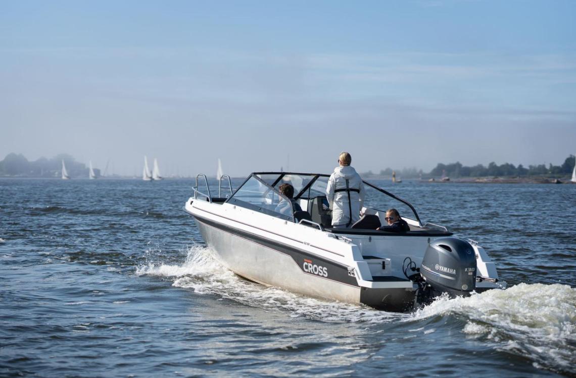 Під стильним та практичним дизайном приховується спортивний характер: з двигуном Yamaha F150 човен здатний розвивати швидкість до 42 вузлів. Міцний алюмінієвий корпус у поєднанні зі зручною палубою зі скловолокна робить Cross 62 BR довговічним, надійним і водночас елегантним. Завдяки відмінній стійкості та чудовим ходовим характеристикам човен впевнено почувається як у прибережних зонах, так і у відкритих водах.